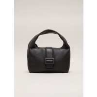 Black Leather Mini Buckle Tote Bag
