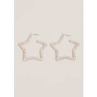 Silver Textured Large Star Hoop Earrings