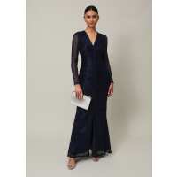 Shannia Blue Ruched Plisse Maxi Dress