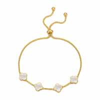 Gold Plated Mother Of Pearl Multi Clover Friendship Bracelet