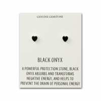 Black Onyx Heart Stud Earrings with Quote Card