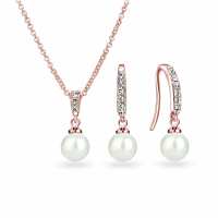 Rose Gold Plated Pearl Drop Set Created with Zircondia® Crystals