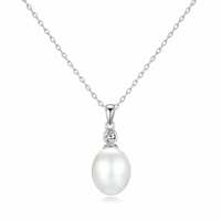 Sterling Silver White Pearl Drop Necklace Created with Zircondia® Crystals