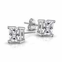 Sterling Silver Stud Earrings Square CZ