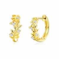 18k Gold Plated Leaf Hoop Earrings Created with Zircondia® Crystals