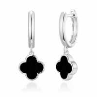 Black Onyx Gemstone Clover Charm Hoop Earrings
