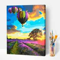 Malen nach Zahlen Set - Heißluftballon über Lavendel