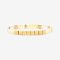 Cream Tile Bead Gold Stretch Bracelet 1-5