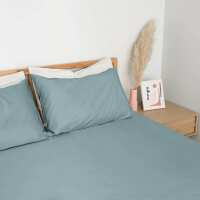 Organic Cotton Percale Fitted Sheet and Pillowcases Aqua Blue / Queen