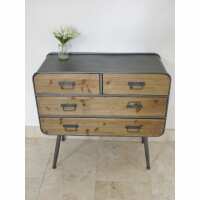 Retro Industrial 50's Style Metal/Wood Chest of 4 Drawers (89 x 41 x 85cm)