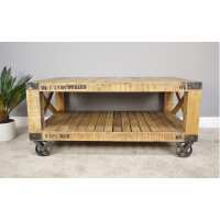 Hoxton Industrial Pallet Coffee Table with Wheels (121 x 77cm x 56cm)