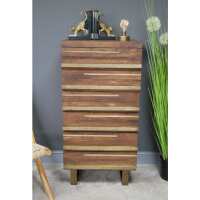 Sinatra 50's Retro Wood 5 Drawer Tallboy Chest of Drawers (55 x 43 x 111cm)
