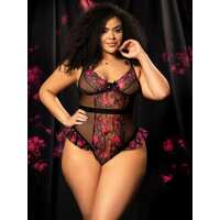 Plus Size Goddess Sheer Floral Teddy 1X/2X / Floral Nymph
