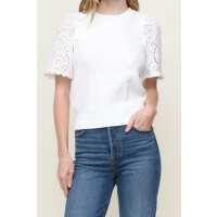 Eyelet Sleeve Sweater XS / WHITE