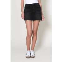 High Rise Raw Hem Mini Skirt M / BLACK