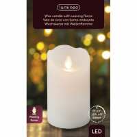 Lumineo LED-Echtwachskerze Flackereffekt, warmweiß, 12,5cm, 6h-Timer, batteriebetrieben