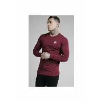 Burgundy Essential Long Sleeve Muscle Fit T-Shirt XS