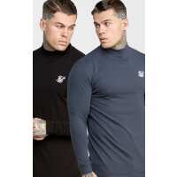 Camiseta De Manga Larga Con Cuello Alto Y Ajuste Muscular En Paquete Doble Negro XS