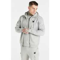 Sudadera con Capucha, Cuello Chimenea y Cremallera Esencial Gris Jaspeado XL