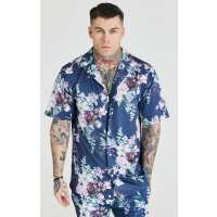 Camisa Unisex con Estampado Vegetal Azul Marino S