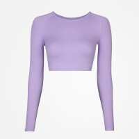 Geripptes Sportshirt langarm Damen | Pastelllila S / 1 Stück