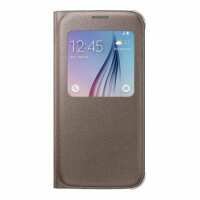 Official Samsung Galaxy S6 S View Premium Leather Flip Cover Case - Gold