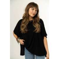 Carina Poncho Tunic Top - Black S / Black