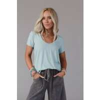 Scoop Neck Bralette Tee - Washed Seafoam XL