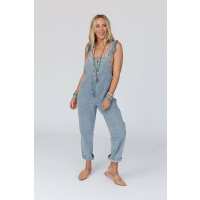 Mylah Button Up Denim Overalls - Blue Denim