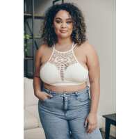 Floral Cut Out High Neck Bralette - Ivory 1/2X / Ivory