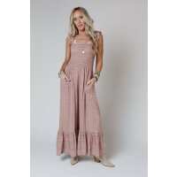 Just A Drifter Smocked Jumpsuit - Mauve S