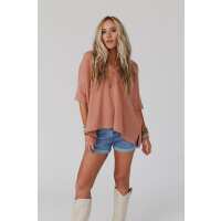 On The Go V Neck Ribbed Essential Tee - Sepia