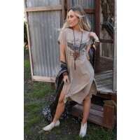 Free Bird Tee Dress - Khaki M/L