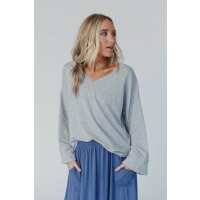 Love It V Neckline Sweater Top - Heather Gray S