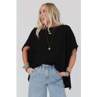 Moon Glow Texture Knit Top - Black