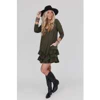 Constance Ruffle Hem Long Sleeve Dress - Olive L