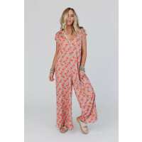 Daphne Floral Print Jumpsuit - Coral L