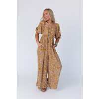 Charlotte Printed Wide Leg Jumpsuit - Mustard Paisley