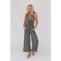 Forever Relaxed Gathered Jumpsuit - Light Olive
