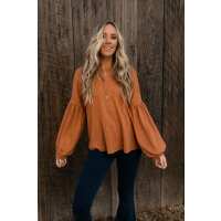 Sweet Heart Balloon Sleeve Knit Sweater - Burnt Orange S