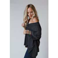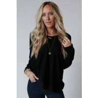 Flattering Open Back Thermal Knit Top - Black