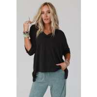 On The Go V Neck Ribbed Essential Tee - Charcoal