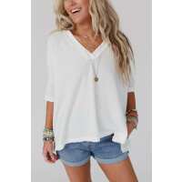 On The Go V Neck Ribbed Essential Tee - Off White