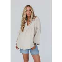 Lovely Day Balloon Sleeve Top - Beige