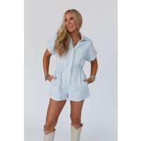 Etta Button Down Romper - Light Blue