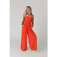 Felicity Smocked Knit Jumpsuit - Red S