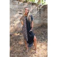 Dayton Printed Contrast Tee Dress - Mocha S