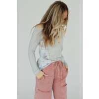 Delaney Color Block Raglan Sleeve Top - Coral L