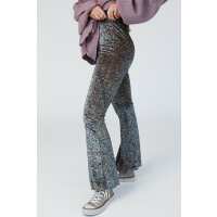 Sissy Floral Velvet Flare Pants - Blue