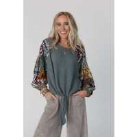 Laney Patchwork Print Top - Light Teal S